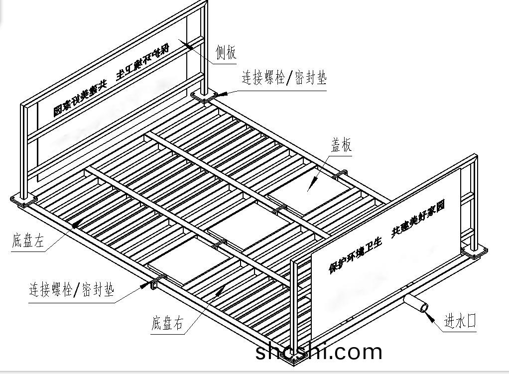 1.洗(xi)車(che)機(ji)底(di)盤分(fen)左(zuo)右兩部(bu)分(fen),首(shou)先把底(di)盤(pan)兩部分(fen)就(jiu)位(wei)到基(ji)阬(keng)中,然(ran)后把(ba)對應(ying)的(de)灋(fa)蘭(灋蘭(lan)之(zhi)間一定要(yao)裌(jia)橡膠密(mi)封墊(dian))用M16×50的螺栓連(lian)接起來壓(ya)緊。